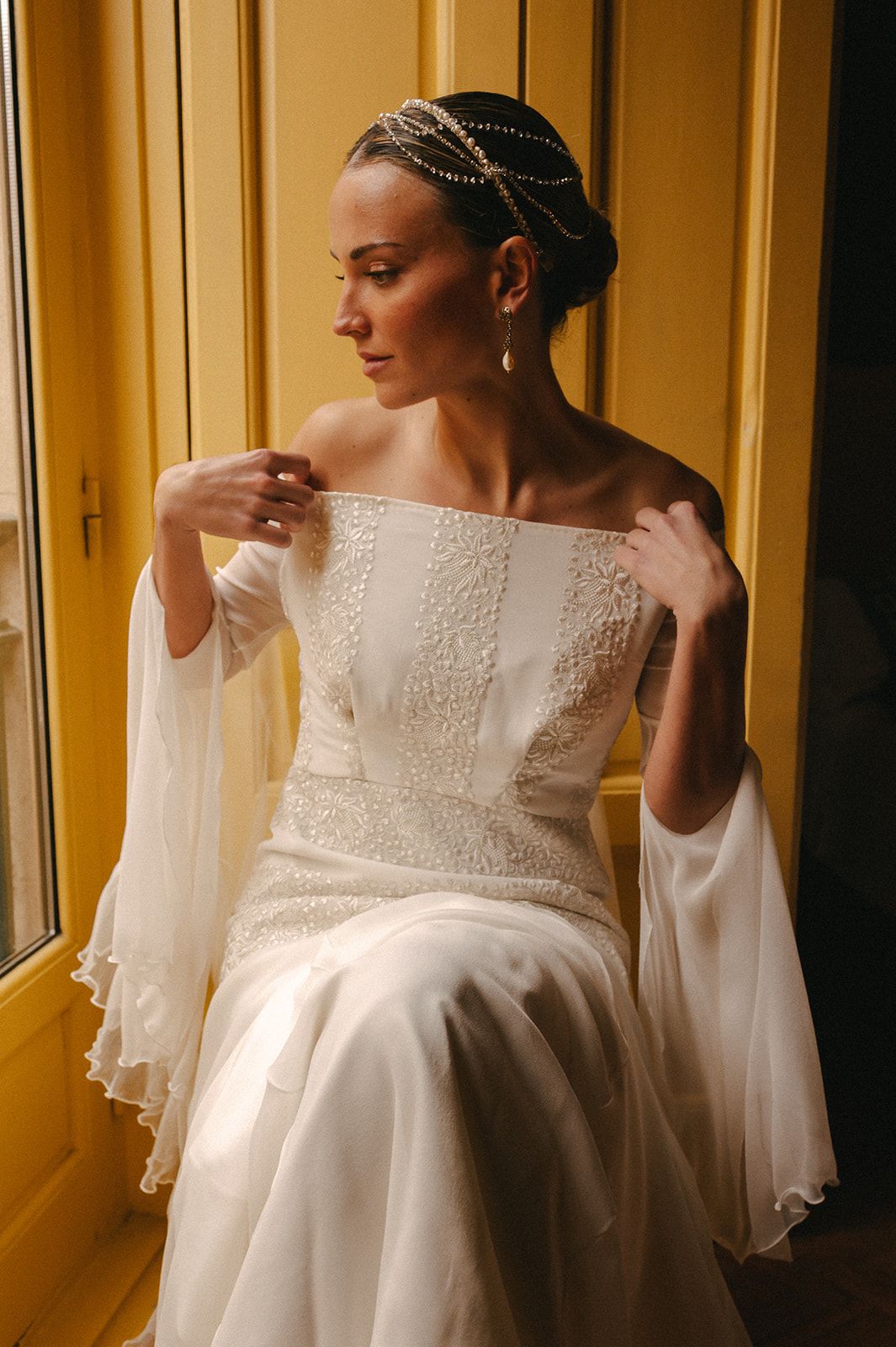 Inspirada en la poesía, las telas se entrelazan creando un equilibrio entre lo clásico y lo contemporáneo. Las bambulas, los encajes, gasas y tules, combinadas con crepes y satén, dan vida a vestidos llenos de encanto, ideales para una novia que busca un estilo único, lleno de emoción y belleza.